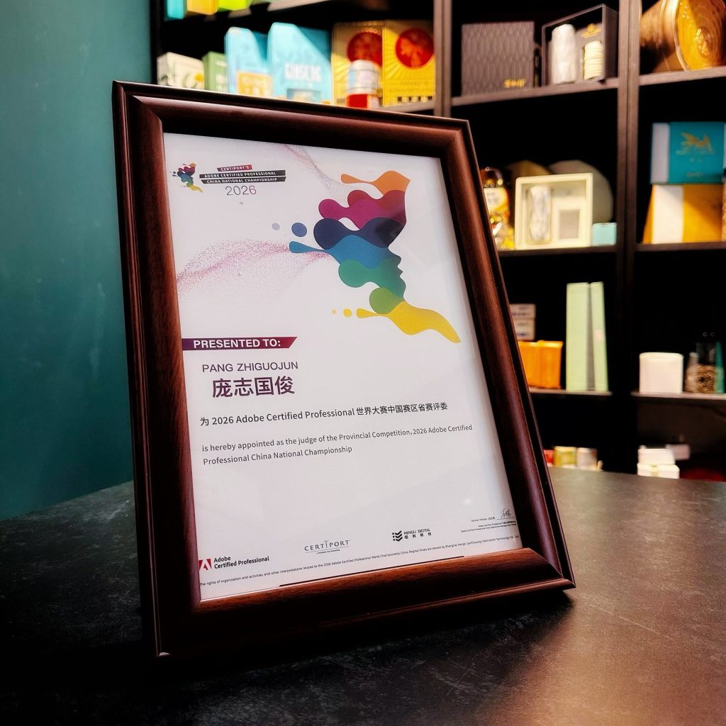 與此同時,龐志國俊先生獲委任為2026 Adobe Certified Professional世界大賽中國賽區省賽評審。ACP世界大賽作為全球數字創意領域的頂級賽事,被譽為「設計界的奧林匹克」,其評審標準代表著行業國際權威級水準。作為評審成員,他將以專業的視角嚴格評審參賽作品,為賽事把關專業質量,同時挖掘亞太地區優秀的青年創意人才,推動國內數字藝術設計標準與國際接軌。