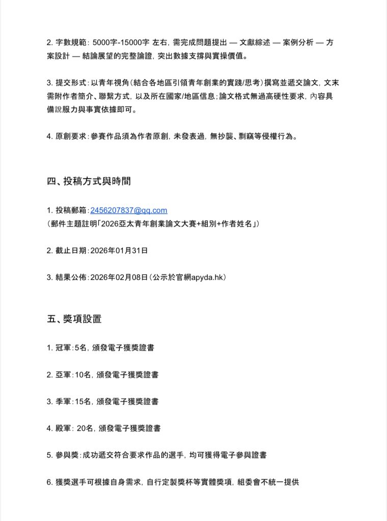 (Please indicate “2026 Asia-Pacific Youth Entrepreneurship Paper Competition + Category + Author Name” in the email subject)