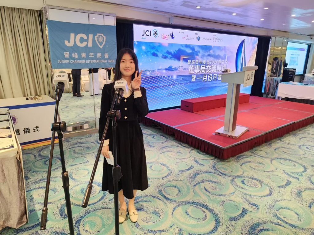 亞太青年發展協會教育發展委員會主席李非凡,今日獲晉峰青年商會(JCI Apex)邀請,擔任「晉峰青年商會2026年度董事局交職典禮暨一月份月會」的專業主持,活動於尖沙咀富豪九龍酒店順利舉行,政制及內地事務局副局長胡健民先生,MH,JP擔任主禮嘉賓,來自政商界、學術界及多個青年組織的逾百名代表出席,場面隆重熱鬧。