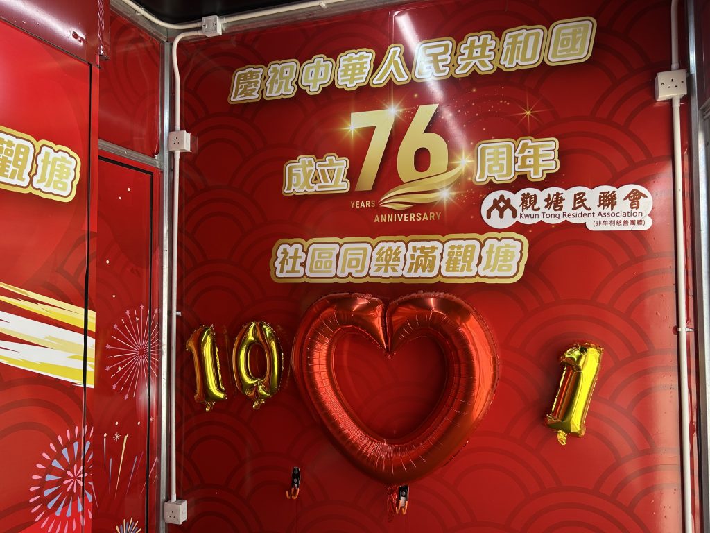 本次活動覆蓋觀塘區平田邨、秀茂坪、安泰邨等8個社區點位,每日開展宣傳車展覽、攤位遊戲、國慶打卡等互動環節,協會總部成員分批次參與各社區場次:在活動現場,成員們協助佈置國慶主題打卡點、引導居民參與趣味遊戲,同時與社區青年分享國家發展成就,傳遞愛國愛港的正向氛圍。
