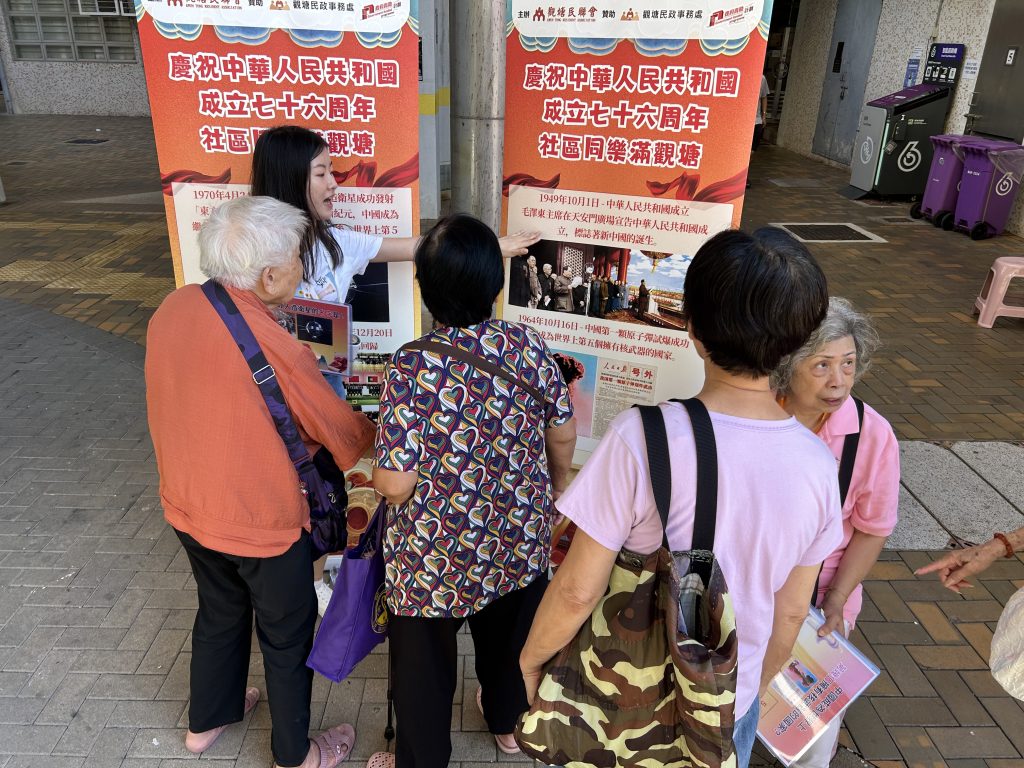 其中,10月4日油塘邨場次的宣傳車互動環節中,協會成員與居民共同參與「國慶知識問答」,現場氣氛熱烈;成員代表表示:「能走進觀塘社區和街坊們一起慶國慶,既感受到了基層社區的煙火氣,也更明白青年要主動紮根社區、服務社區的意義。」